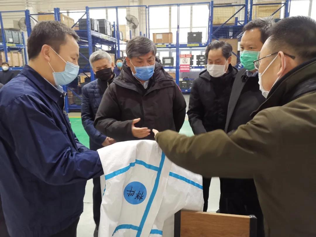 劉大山、李春建到中國北方車輛研究所調(diào)研檢查防護(hù)服壓條機(jī)研制情況, |