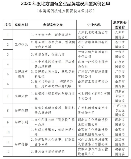 5月10日,由國家發(fā)展改革委等7部門和上海市政府共同主辦,國務(wù)院國資委特別支持的2021年中國品牌日活動在上海舉辦。 活動現(xiàn)場,國資委指導(dǎo)舉辦了中國企業(yè)品牌建設(shè)分論壇,會上發(fā)布了《2020年度中央企業(yè)品牌建設(shè)發(fā)展報告》、2020年度100個國有企業(yè)品牌建設(shè)典型案例和100個優(yōu)秀品牌故事。中國兵器工業(yè)集團北重集團的“技術(shù)創(chuàng)新和商業(yè)模式創(chuàng)新并驅(qū),打造知名民族礦用車品牌”入選2020年度100個國有企業(yè)品牌建設(shè)典型案例,中國兵器工業(yè)集團北方公司的微電影《大山里升起的希望》入選2020年度100個優(yōu)秀品牌故事。 《2020年度中央企業(yè)品牌建設(shè)發(fā)展報告》分析了當(dāng)前中央企業(yè)加強品牌建設(shè)的形勢要求,從戰(zhàn)略引領(lǐng)、專業(yè)運營、支撐保障、組織管控、全球推廣5個方面總結(jié)了中央企業(yè)年度品牌建設(shè)進展。 2020年度100個國有企業(yè)品牌建設(shè)典型案例和100個優(yōu)秀品牌故事,匯集企業(yè)優(yōu)秀經(jīng)驗做法,豐富國企品牌資源池,促進企業(yè)相互學(xué)習(xí)借鑒,加快提高品牌管理專業(yè)化水平。 2020年度100個國有企業(yè) 品牌建設(shè)典型案例 來源/國資小新 |