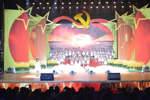演出共分為三個篇章:“迎建黨百年、傳兵工精神”“憶長征歲月、夢璀璨中國”“承紅色基因、展幼教初心”。演出過程中掌聲不斷,高潮迭起,有合唱,有情景劇,有舞蹈,有快板,全科共361名演出人員,孩子們個個落落大方,神采飛揚,《在燦爛陽光下》《燈火里的中國》《兵工情》,銘記紅色歷史,引導(dǎo)孩子們從小繼承革命傳統(tǒng),傳承兵工精神”?!洞禾斓陌爬佟贰段覑郾本┨彀查T》《水墨丹青繪祖國》《長征路上》一首首歌曲鏗鏘有力,一段段回憶激蕩人心,師幼同臺唱出了對黨對祖國的熱愛和崇敬之情,讓人們感受到孩子們爭做新時代紅色接班人的信念、決心?!栋褠郢I給咱的娃》《未來的保衛(wèi)者》《炫彩青春》引導(dǎo)孩子們從小繼承革命傳統(tǒng),傳承紅色基因,讓紅色教育點亮童年,讓紅色精神代代相傳?!皞鞒屑t色基因,紅色精神代代相傳?!?/p>