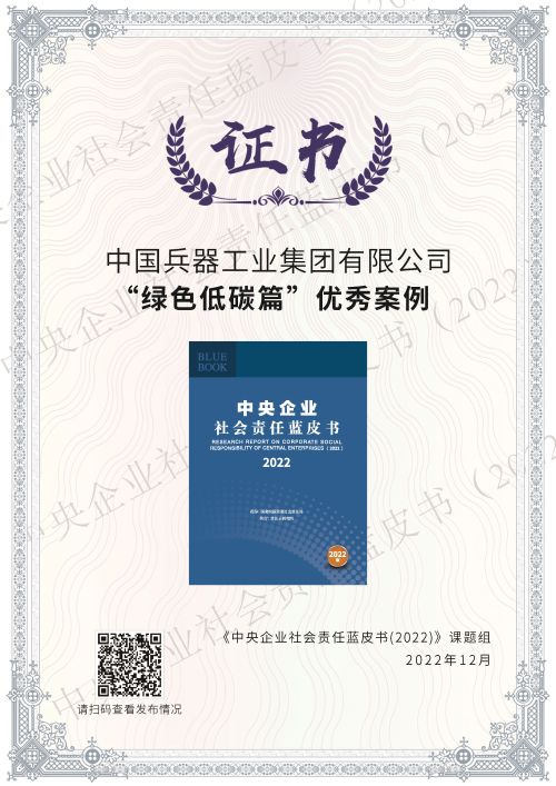 兵器工業(yè)集團(tuán)綠色低碳案例入選《中央企業(yè)社會(huì)責(zé)任藍(lán)皮書(shū)(2022)》 |