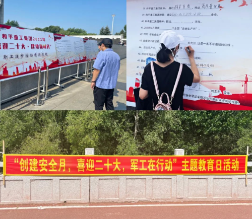 和平重工集團在安全生產(chǎn)月期間組織開展了“創(chuàng)建安全月 喜迎二十大 軍工在行動”主題教育日活動,現(xiàn)場懸掛宣傳橫幅標(biāo)語,工作人員為職工們發(fā)放安全知識宣傳冊、扇子等宣傳用品,并在現(xiàn)場組織了安全知識有獎答題環(huán)節(jié),調(diào)動廣大職工參與的積極性,大力營造了“關(guān)愛生命、關(guān)注安全”的良好氛圍。