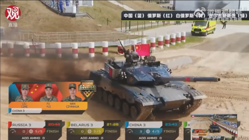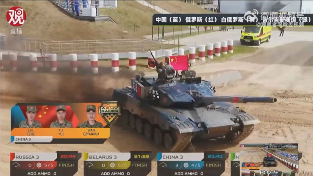 96B坦克助力中國(guó)隊(duì)挺進(jìn)“坦克兩項(xiàng)”半決賽 當(dāng)?shù)貢r(shí)間8月21日 “國(guó)際軍事比賽-2022” “坦克兩項(xiàng)”單車(chē)賽第三輪的比拼 在俄羅斯阿拉比諾拉開(kāi)帷幕 中國(guó)參賽隊(duì)駕駛96B坦克 發(fā)揮出色 在單車(chē)賽中 中國(guó)與白俄羅斯、俄羅斯、吉爾吉斯斯坦 分在同一組進(jìn)行比拼 比賽中 96B坦克全程發(fā)揮穩(wěn)定 一路疾馳通過(guò) 涉水場(chǎng)、土嶺、車(chē)轍橋等各類障礙 順利完成比賽 高射機(jī)槍命中 本屆“國(guó)際軍事比賽”“坦克兩項(xiàng)”項(xiàng)目 共有21個(gè)國(guó)家和地區(qū)的隊(duì)伍參加 中國(guó)參賽隊(duì) 335車(chē)組、334車(chē)組、336車(chē)組 分別取得第五、第八、第九名 以單車(chē)賽總評(píng)第二的成績(jī) 成功晉級(jí)半決賽