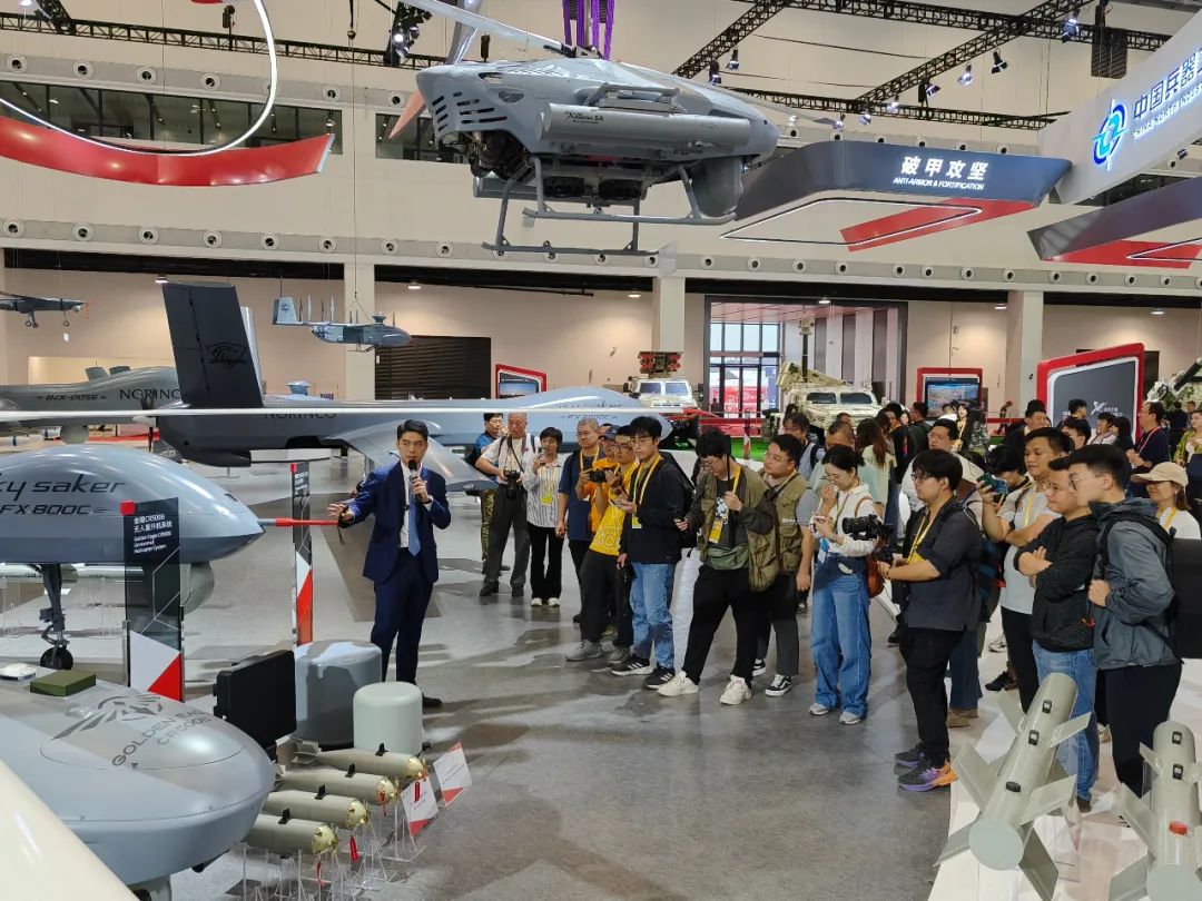 第十五屆中國(guó)航展即將開(kāi)幕,在中國(guó)兵器館,各種重量級(jí)的展品都已經(jīng)就位。在11月10日下午的“中國(guó)兵器媒體日”活動(dòng)現(xiàn)場(chǎng),數(shù)十家主流媒體來(lái)到中國(guó)兵器館進(jìn)行“探館”。 本屆航展,兵器工業(yè)集團(tuán)著重展示數(shù)智賦能軍貿(mào)合成旅作戰(zhàn)體系?!疤金^”現(xiàn)場(chǎng),新聞發(fā)言人向記者團(tuán)介紹了本屆航展集團(tuán)公司參展亮點(diǎn)、明星產(chǎn)品和技術(shù)發(fā)展成果,并對(duì)VT5-U輕型坦克、VU-T10無(wú)人平臺(tái)、SR5多管火箭炮、金雕CR500B無(wú)人直升機(jī)系統(tǒng)、指揮控制中心等參展裝備和技術(shù)作了重點(diǎn)介紹,媒體記者進(jìn)一步了解了裝備的性能和特點(diǎn)。在無(wú)人火力展區(qū),記者團(tuán)還走進(jìn)仿真訓(xùn)練體驗(yàn)區(qū),親身“使用”單兵武器,體驗(yàn)裝備性能。 在參觀完兵器工業(yè)集團(tuán)展區(qū)后,媒體記者們紛紛表示,中國(guó)兵器館給他們帶來(lái)了前所未有的沖擊感,尤其是本次參展的眾多新裝備,讓人耳目一新,更加期待幾天后的軍貿(mào)新品發(fā)布會(huì)。 |