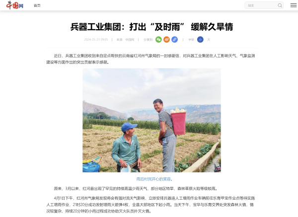 中國(guó)網(wǎng)報(bào)道兵器工業(yè)集團(tuán)助力云南省紅河州氣象保障 |